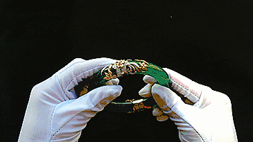 昨天,瑞丽珠宝城的 「手镯昏迷案」 在朋友圈刷屏了一整天 得知那位昏迷的大姐 最终终于醒了过来 虽然,网上流传最终按18万的价格索赔了 但小编依旧觉得不可思议 小编存款只有4位数 18万,卖肾估计也还不够呀 这就是被摔成两段的价值30万的翡翠手镯 玉镯碎了,通常没有土豪买单 也往往痛心疾首 不少人还拿着红纸包了供着 丢了可惜,留着伤心 难道只能悲叹破镜难圆 非也非也 ▼ 接下来的内容,是关于断镯如何重生的, 至少,赔也赔了 手镯还是自己的呀 ㊣ 断镯的涅槃 首先,找到一位专业的设计师, 他会先依据玉镯的断面数量、 手镯的颜色、断面的距离,绘制合适的设计图样 碧翠手镯,适合古典的花草纹镶金 金镶玉制品兼具了 玉石的纯洁和金属的贵气 别具韵味 下图和瑞丽大姐 摔碎的那个镯子倒是挺像的 修复的效果也还不错 ▼ 断镯金镶玉后所呈现的,除了玉石本身散发的富贵华丽气息外,也是对传统手工镶嵌艺术的的赞美。 最后,小编希望这次事件中的大姐,能够庆幸手镯碎裂是因为替她挡去了磨难和灾祸,也希望商家能让步与她协商到一个合理的赔偿价格,至于赔偿后嘛,当然是赶紧找个功力好的设计师,修复好玉镯,说不定还有人愿意出高价回收这件重生过后的艺术品呢! 就像维纳斯那带来无限遐想的断臂之美,人生之中不如意十之八九,但缺憾也时常带来意想不到的结果。